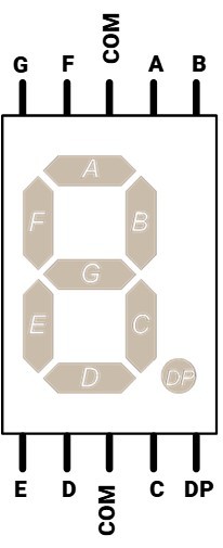 So basically, 8 pins for the 8 LED segments, and 6 pins which determine which specific segments we're lighting up at that moment.